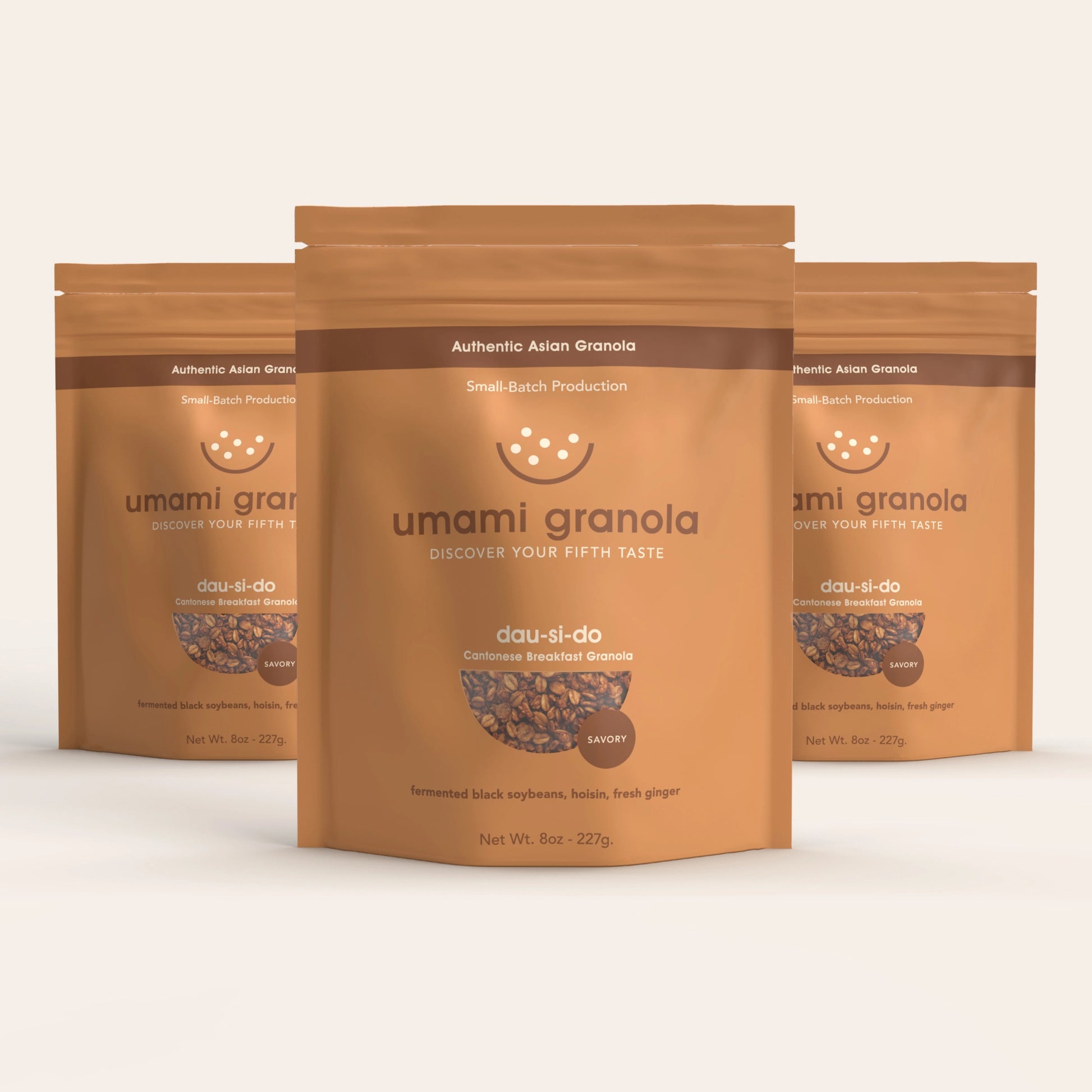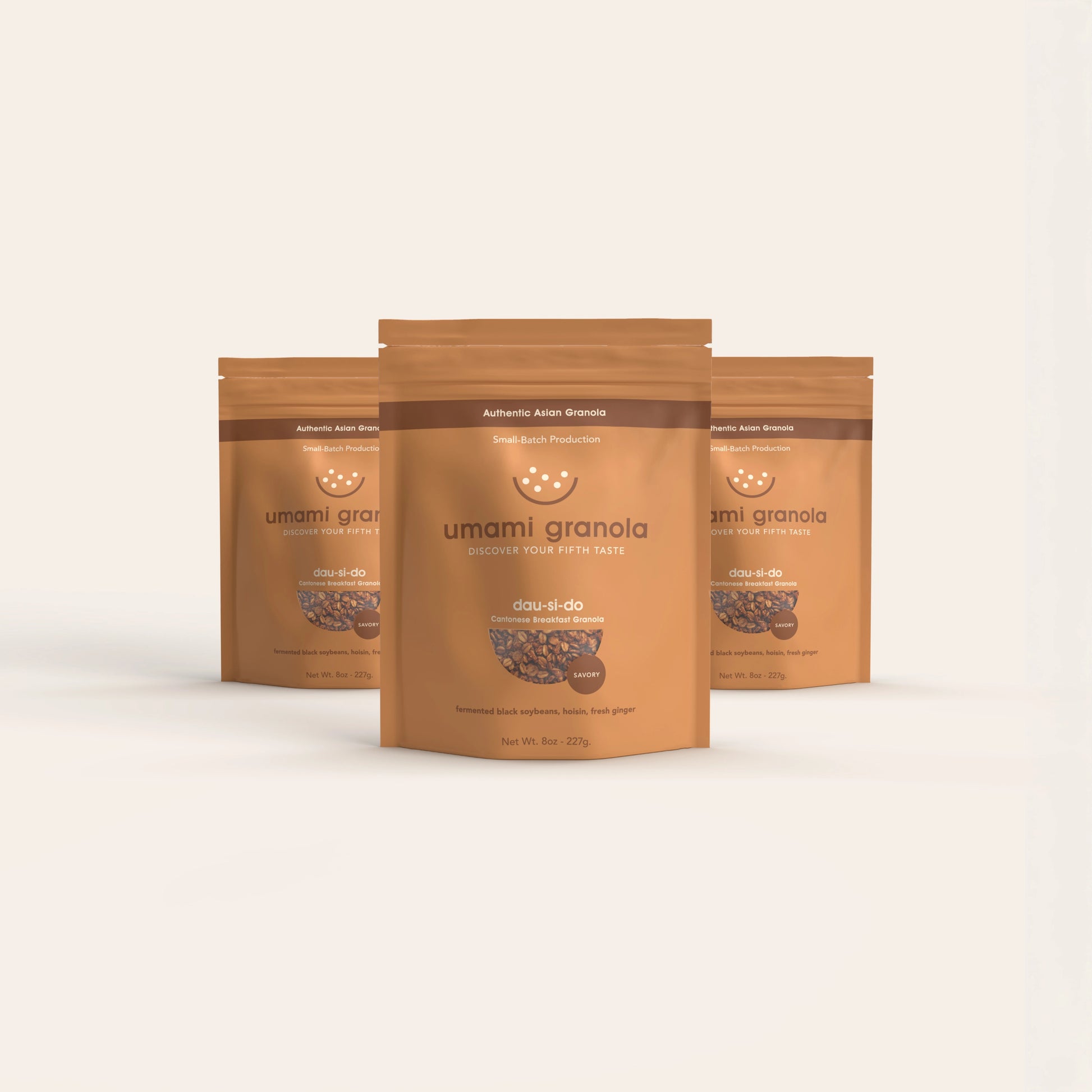 Three 8oz pouches of savory breakfast sophistication. Experience how fermented black soybeans (豆豉), hoisin (海鮮醬), and ginger (薑) create savory umami depth through limited production.